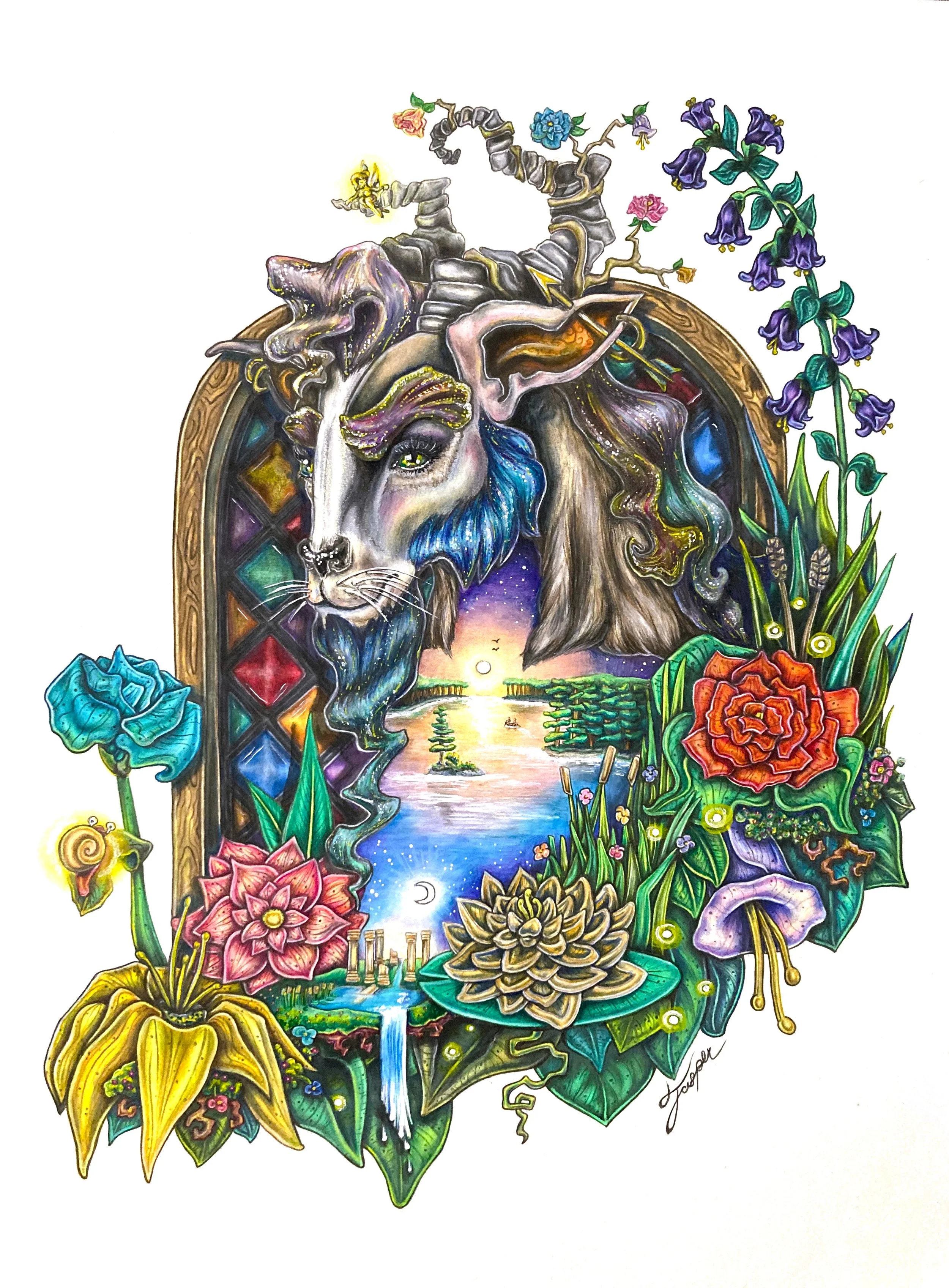 Today, my artistic style retains its essence of feminine beauty, but has armoured itself with a darkened edge and imbued itself with an illustrative style that incorporates my imagination’s maximalist overdrive. I work predominately in pencil, pencil crayon, charcoal, chalk, and acrylic paint, but most recently, it is usually a combo of at least three of these. I am well versed in digital art platforms, most especially Clip Studio, but often prefer to create in physical mediums. I like dirty hands. To support my art, shop my Redbubble Page linked below or enrol as a student of the After Dark Arts.